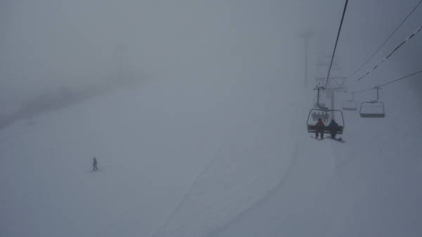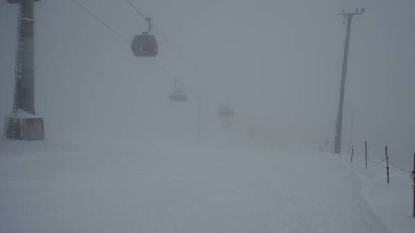 観光第三が動き出し、あまり並んでないので、今日はこれで上へ向かいます。 視界はどんどん悪くなってます。 |