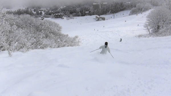 昨日のシュプールがたくさんあるけど、雪は軽めなのでトラックをあまり感じなくて滑れます。 今日はハイクせず、チロルリフトへ。 中央トリプルがまだ動きそうにないので、チロルリフト脇の非圧雪を2本滑って時間調整。 |