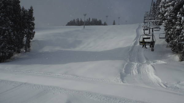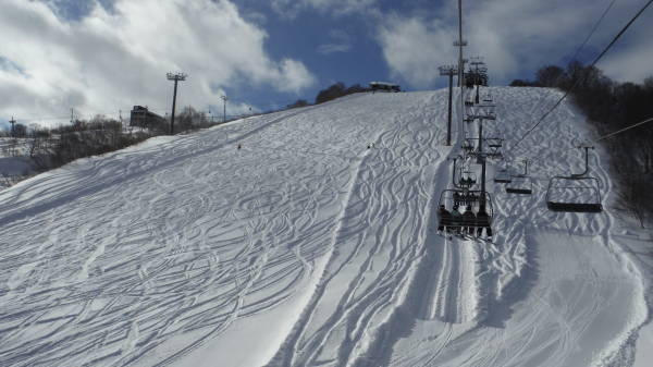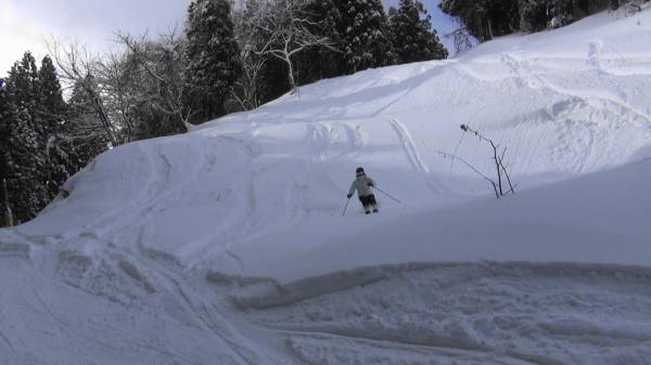 予想より、深く、軽く、石打では極上といえる雪質。 ノートラックを5本滑れました。(^^)v |