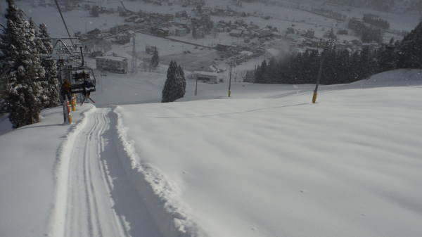 積雪が増えたので、ようやく牧場しぼりも滑れるようになりました。 朝の5本が最高だったので、今日はヨシとしましょう。 |