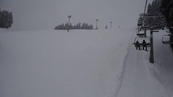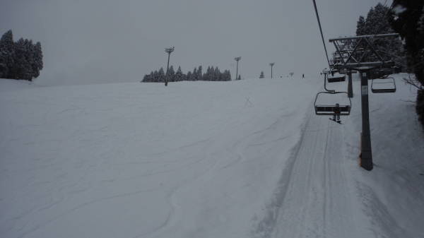 右半分は1回均してから積もったようなので、難易度低の荒れ地。 左半分は放置後新雪で難易度高そうでしたが、骨折疑惑の旦那様によると、ジャイアントよりは難易度低かったそうです。 |