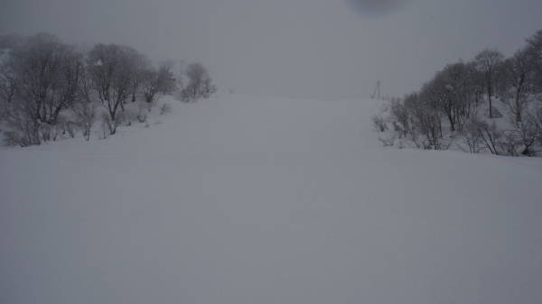 さてさて、かなり凹凸が見えるようになってます。 朝一は見えなかったので、どうなってるかわからない非圧雪には入りませんでしたが、これだけ見えれば安心です。 まだまだノートラックも残っており、5〜6本周回して、本日終了。 |