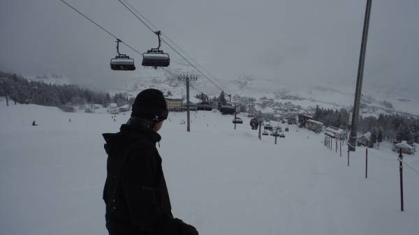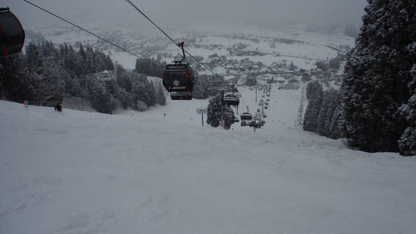 今日も山頂は滑らず、ザイラー〜デビルで下山します。 だいぶ視界が良くなってきました。 |