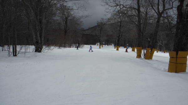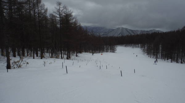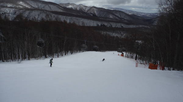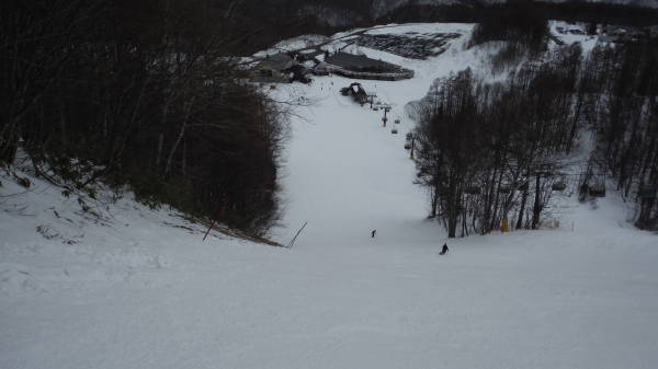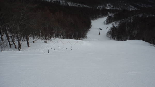 平日は第三クワッドが運休なので、ここから上へは行けません。 このコースは、ずっとコース右手にウェーブがありました。 |