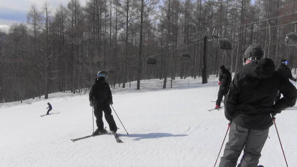 レッスン終わりに、またまた西沢選手の滑りを見られることに。 今日はコーチも来ていて、通して滑ってくるところが見られました。 日本代表の滑りは、別格ですね。 |
