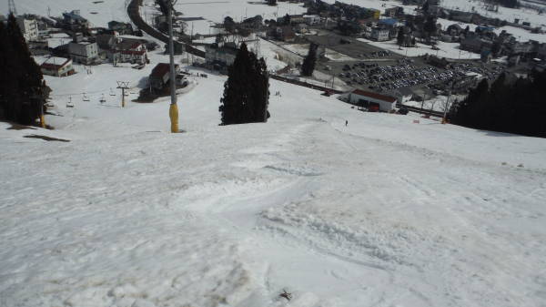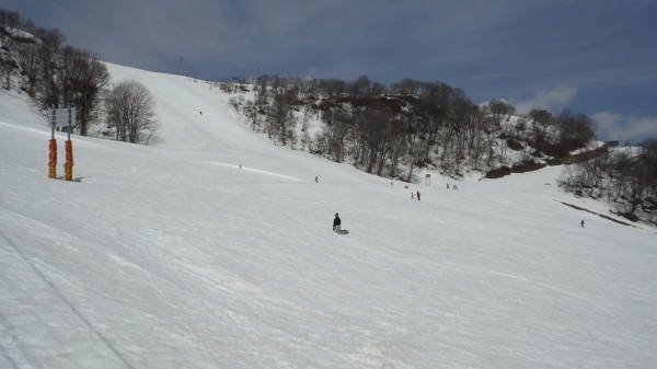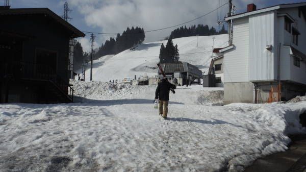街中の雪がかなり減っておりましたので、スキー場はどんなもんかと心配しましたが、想像よりは残ってました。 今日は完璧にザケてましたので、リフト乗り場までの歩きがしんどかった。 |